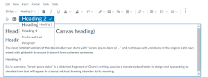 - Use the built-in Headings to organize and structure your content - Similar to Word, Canvas's headings feature structures your content. The image below illustrates the drop-down menu where you can select your heading style. Note that Canvas's headings begin with Heading 2.