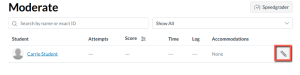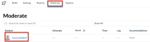 - At the top, click the Moderate tab and then click on the student's name (it will be a link).