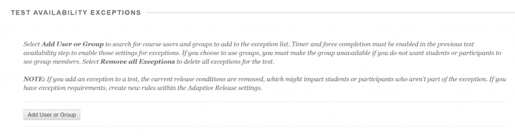- Scroll down and under Test Availability Exceptions and click “Add User or Group”.