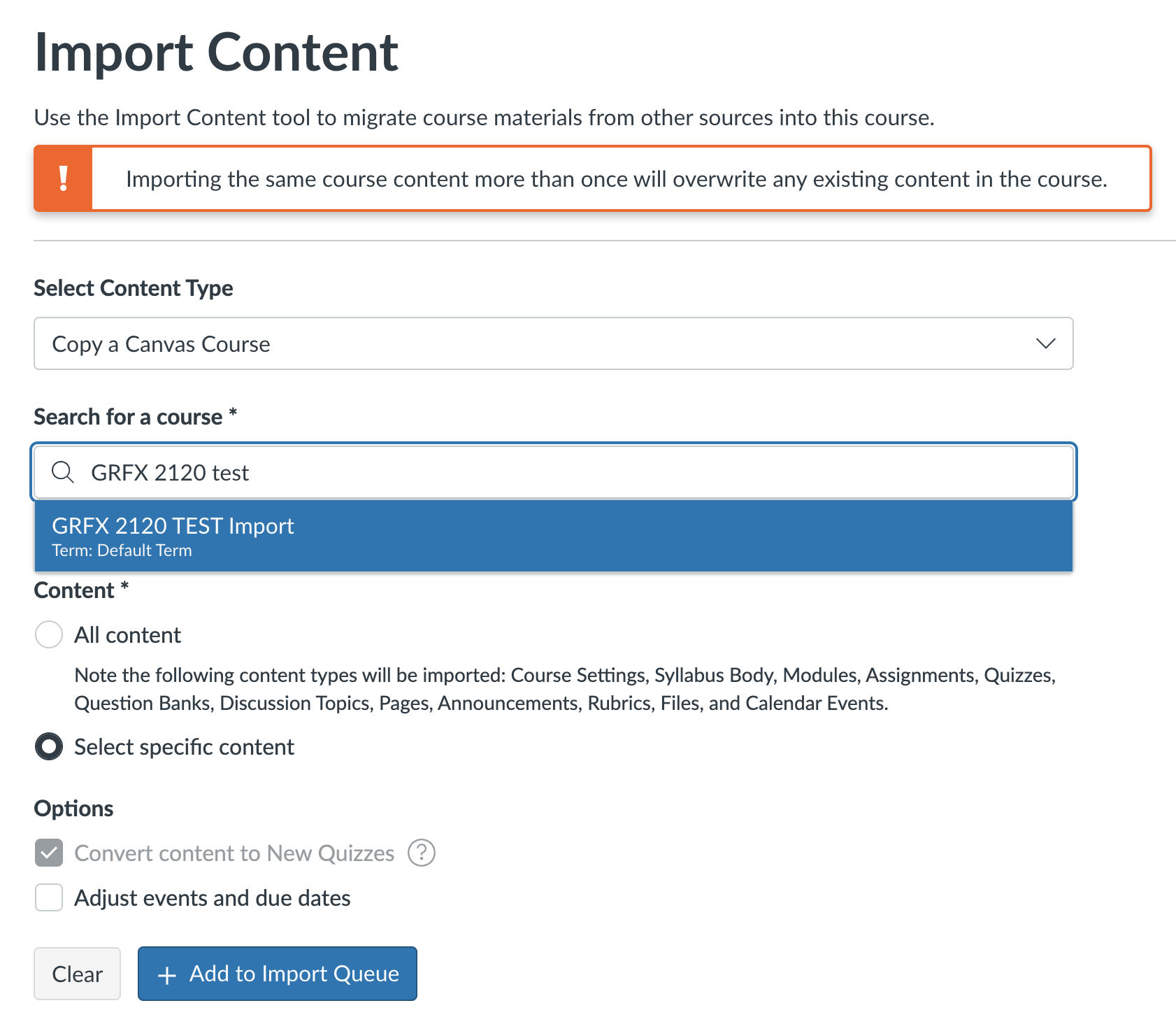 - Under Content Type, choose Copy a Canvas Course.